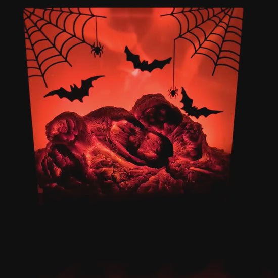 The dynamic Dancing Flames of fire displayed by this unique Wax Melter has a spooky burning background glow behind flying bats. It provides just the right amount of Spooky light while your favourite aroma fills the air.